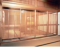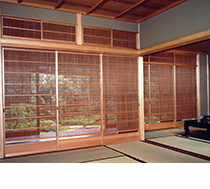 夏には紙の障子をお座敷すだれに、襖を夏障子に入れ替えます。